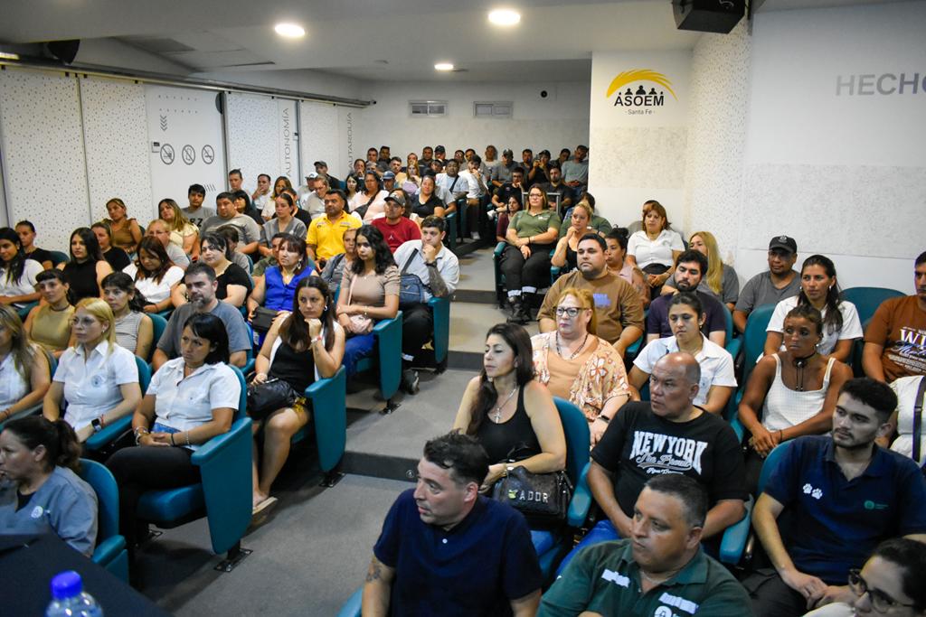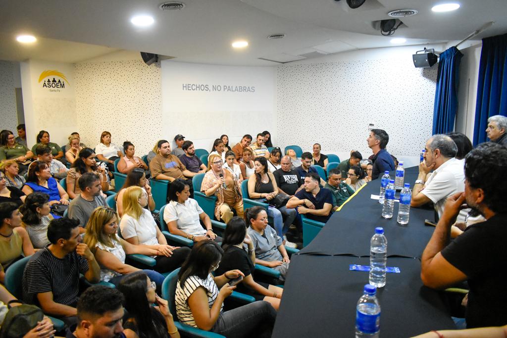 El secretario General de la ASOEM, Juan R. Medina, encabezó este martes un encuentro con compañerxs de la Municipalidad de Santa Fe que mejoraron su situación laboral, en el marco de acuerdos alcanzados en la Mesa Paritaria Local. El acto, que significó un nuevo paso en la lucha sostenida por la jerarquización del empleo municipal, se desarrolló en el Multiespacio Cultural de la sede sindical -Urquiza 1954- y contó con la presencia de demás integrantes de la Comisión Directiva.