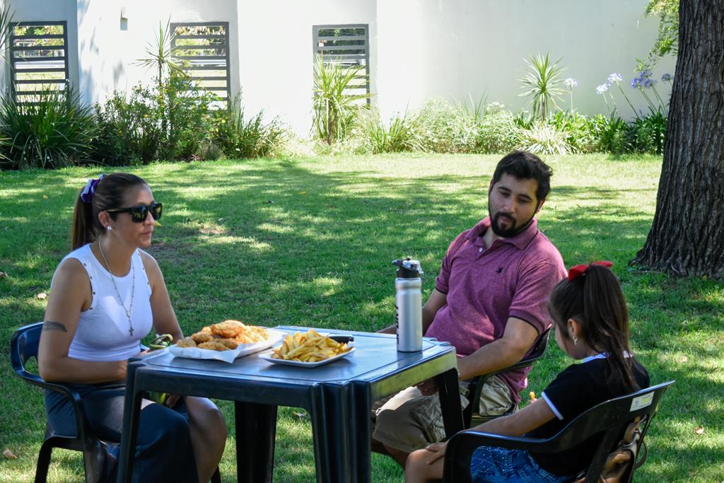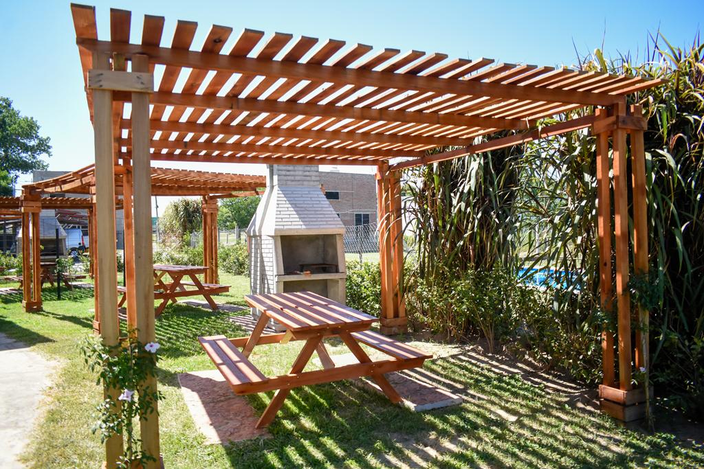 En el marco de estas mejoras, en cuatro de los bungalows se incorporaron pérgolas, mesas y asadores, equipamiento para el uso recreativo y parrillero, mobiliario exterior, cerramientos vegetales y camastros; además de trabajos de parquización, mantenimiento general y acondicionamiento integral del predio. Estos avances permiten que lxs huéspedes puedan disfrutar de un espacio acogedor y privacidad durante su estadía.