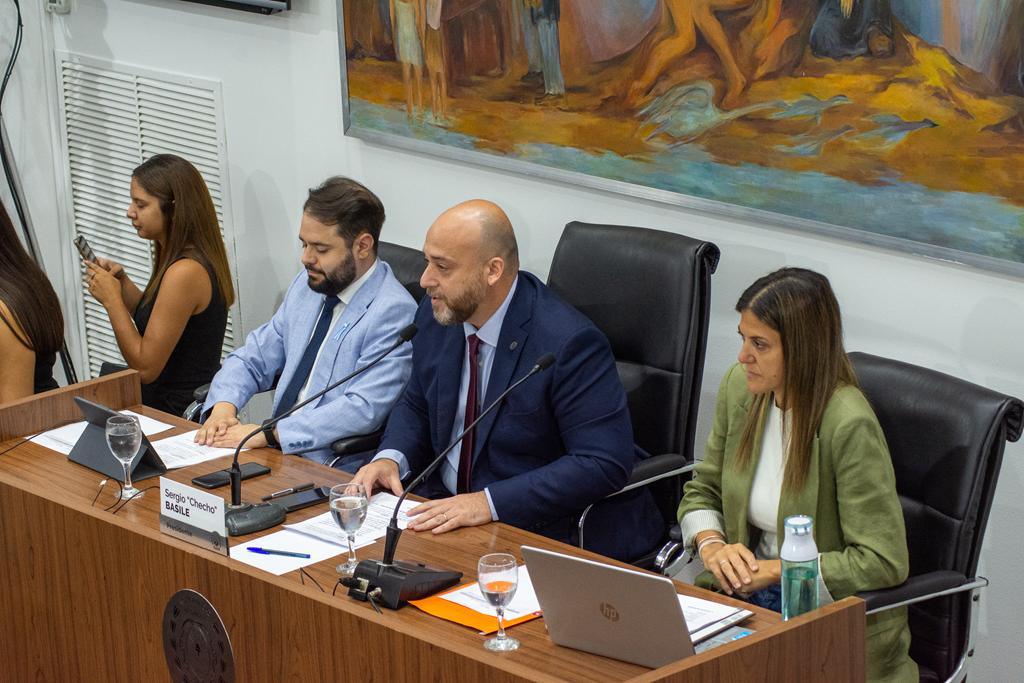 La sesión fue encabezada por el presidente del cuerpo legislativo, Sergio “Checho” Basile, junto a la vicepresidenta primera, Silvina Cian, y la vicepresidenta segunda, Jorgelina Mudallel. El acto contó con una nutrida concurrencia de autoridades políticas, académicas, institucionales, de fuerzas, funcionarixs y legisladorxs provinciales.