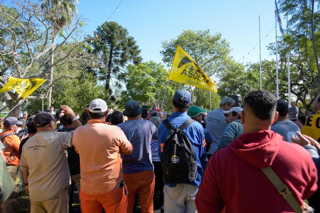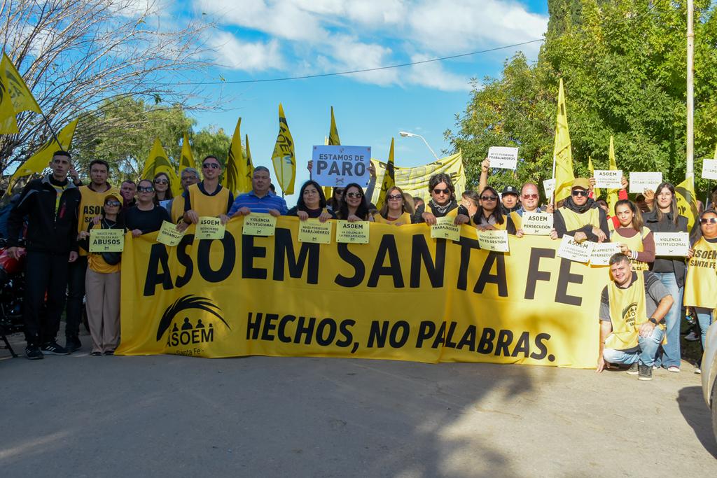 La protesta se sustenta en hechos de extrema gravedad: el desconocimiento por parte del intendente Mario Papaleo de la legitimidad de ASOEM como entidad representativa —que cuenta con 105 afiliadxs—, la vulneración de la libertad sindical, la negativa sistemática a establecer un canal de diálogo y las amenazas dirigidas a lxs trabajadorxs. Esta postura no solo implica un desconocimiento de derechos adquiridos, sino que además atenta contra la organización colectiva de lxs agentes municipales, un derecho garantizado por el artículo 14 bis de la Constitución Nacional y reafirmado por el artículo 23 de la Constitución de la Provincia de Santa Fe, sancionada en 2025, que establece que “la Provincia reconoce y protege el derecho de asociación y de expresarse con libertad respecto a su trabajo. Asegura la libertad sindical, la tutela sindical, la negociación colectiva y el derecho de huelga”.